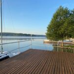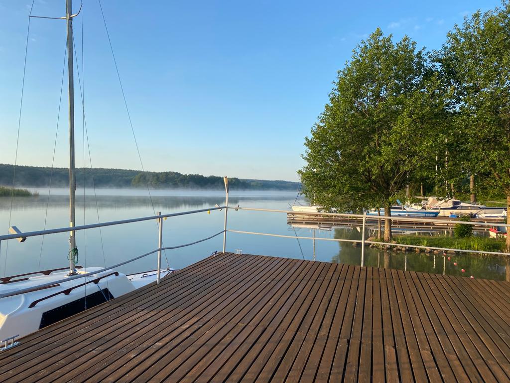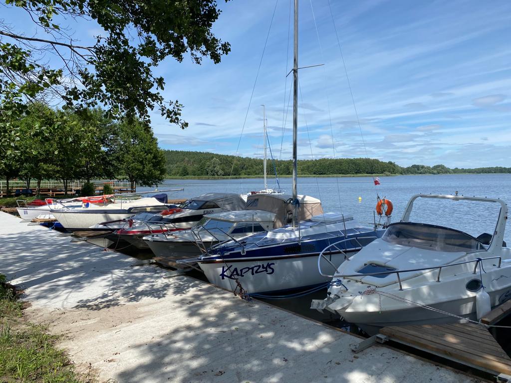 Dwa pomosty umożliwiają cumowanie łodzi i jachtów. Kanały żeglowne poszerzają zasięg wycieczek niemal na całą Polskę. W ośrodku znajdują się dwa pensjonaty, dom wczasowy oraz 9 domków drewnianych. Łącznie oferujemy ponad 150 miejsc noclegowych, wszystkie z łazienkami.