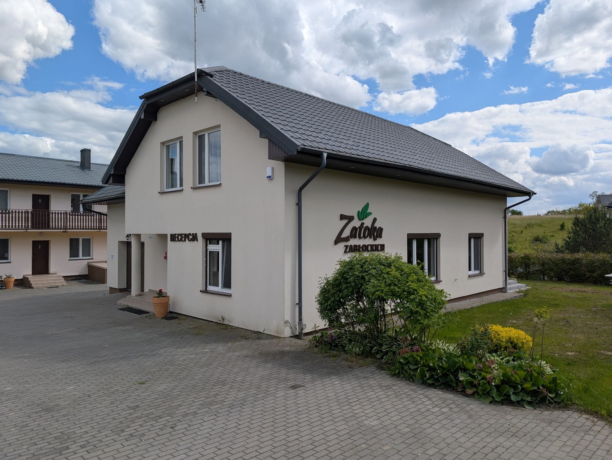 Piękna lokalizacja, tuż przy jeziorze i stawach. Zadbana okolica i dużo zielonego terenu. Plus za boisko do siatkówki, prywatną plażę, możliwość wypożyczenia sprzętu wodnego. Możliwość skorzystania z grilla (nieodpłatnie).