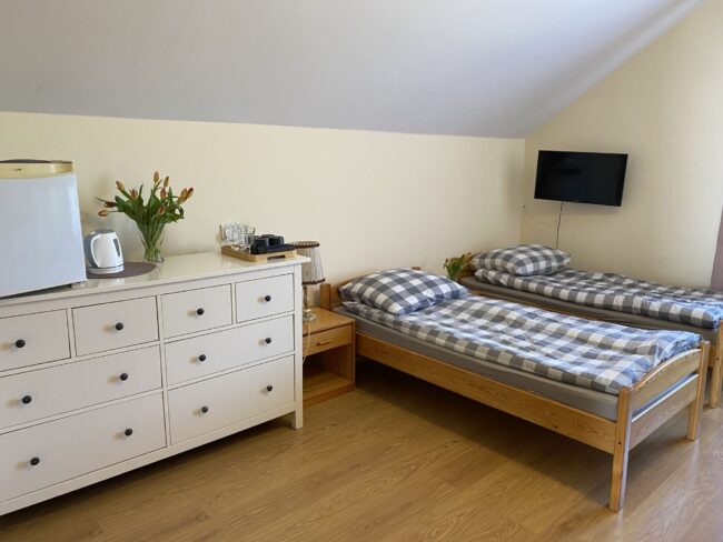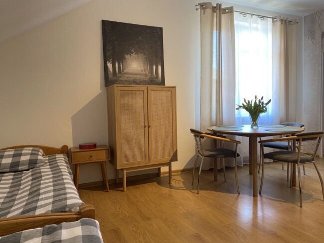 Nasze apartamenty zostały zaprojektowane z myślą o gościach, którzy cenią sobie wygodę, estetykę i bliskość natury. Oferujemy przestronne, urządzone ze smakiem i w nowoczesnym stylu pokoje, gdzie każdy detal tworzy przytulną i harmonijną atmosferę sprzyjającą relaksowi. Wnętrza zostały starannie przemyślane tak, aby łączyć nowoczesne udogodnienia z ciepłym, domowym klimatem.