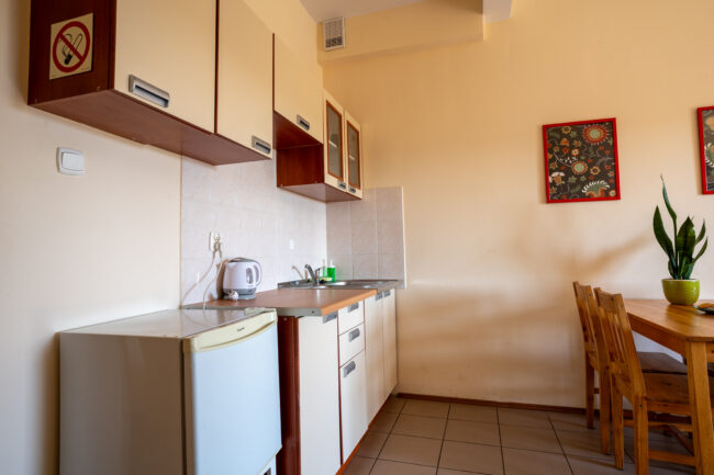 Każdy apartament wyposażony jest w prywatną łazienkę, telewizor z płaskim ekranem oraz dostęp do bezpłatnego Wi-Fi, co pozwala na komfortowy wypoczynek bez względu na pogodę czy długość pobytu.